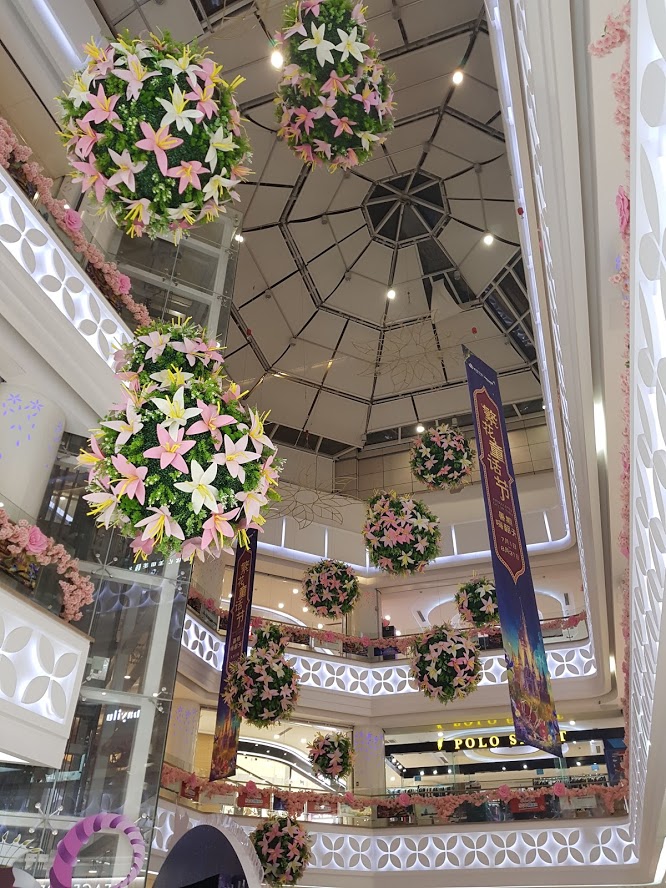 On entre dans un magnifique centre commercial.
